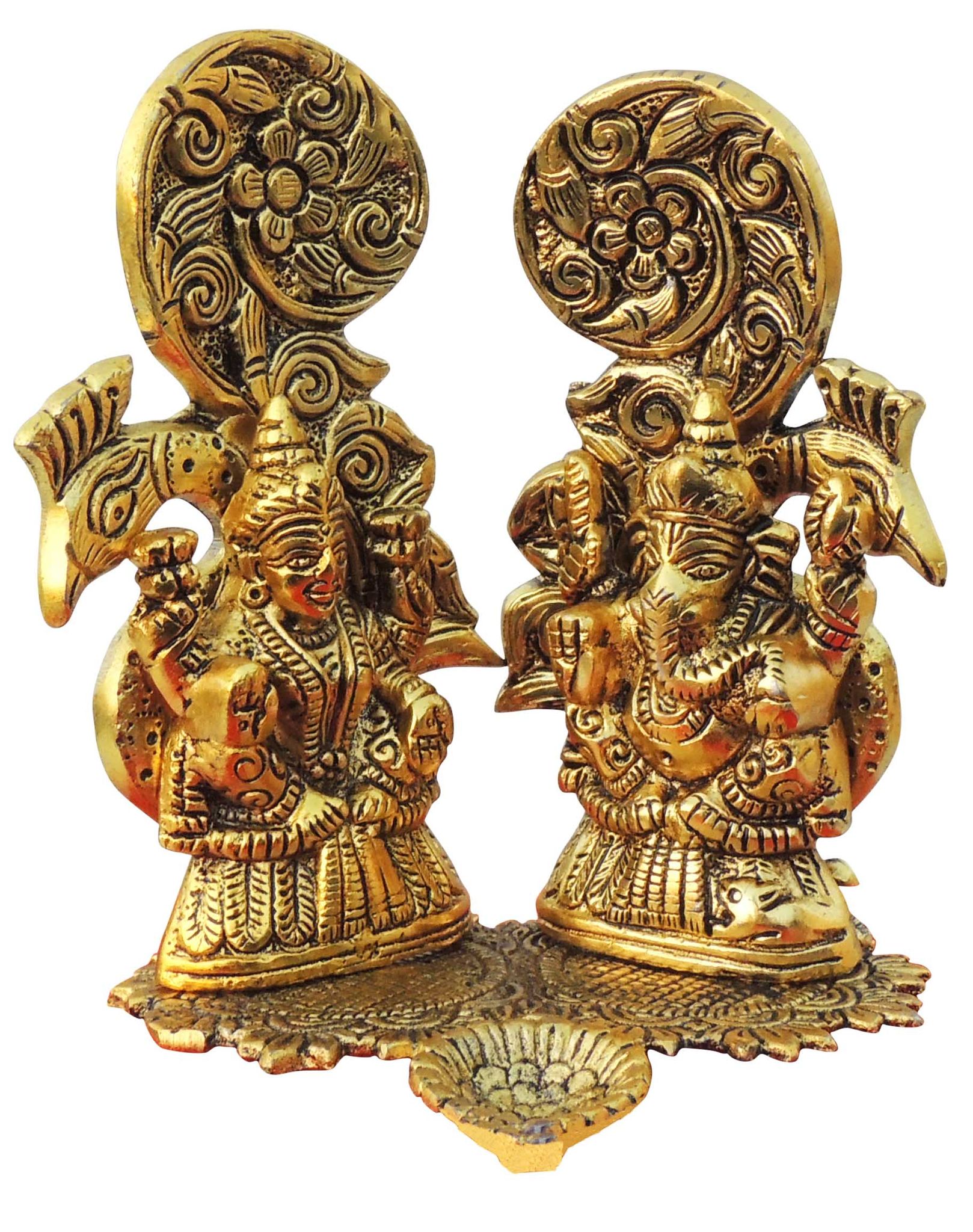 Aluminium Showpiece Peacock Laxmi Ganesh Statue