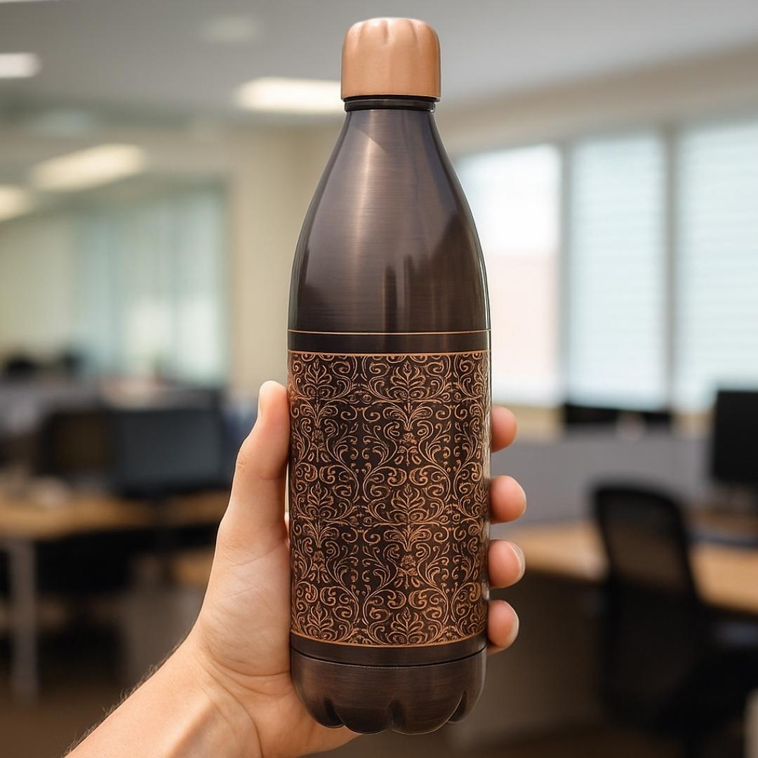 Copper Drinking Water Bottle Antique manufactured by Bharat Selo. Designed with a premium hammered finish, this bottle adds a traditional yet stylish charm to your lifestyle. Made from 100% pure copper, it’s more than just a copper water bottle — it’s a tool for natural healing and daily detox.