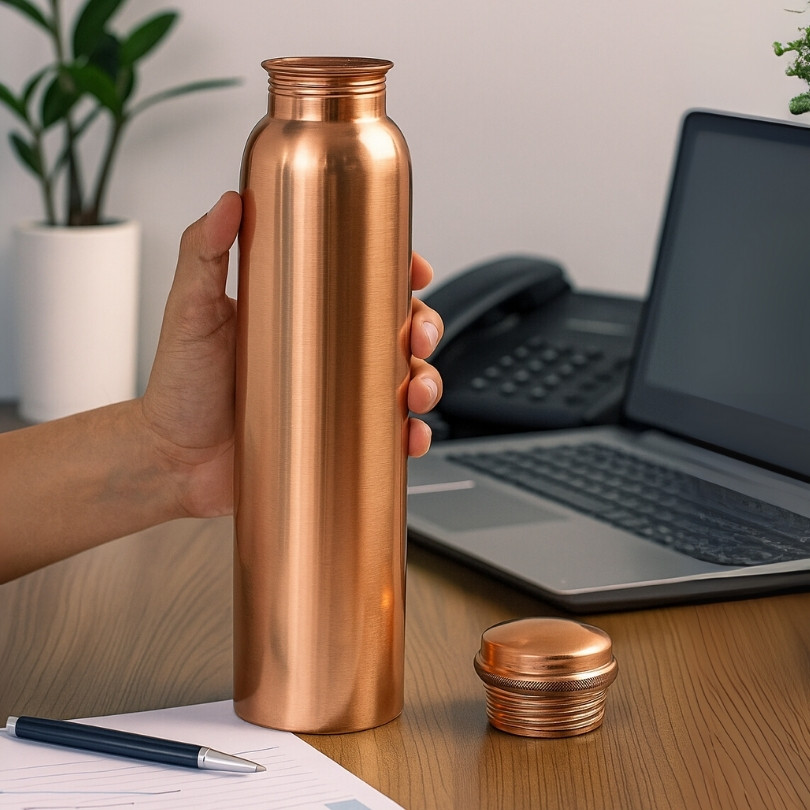 Experience the power of Ayurveda with a pure Copper Water Bottle made by Bharat Selo to promote health and wellness naturally. Made from high-grade copper, this Copper Water Bottle helps balance the body’s three doshas and improves digestion. Drinking water stored in copper vessels has been an age-old Indian tradition known for its detoxifying and immunity-boosting properties.